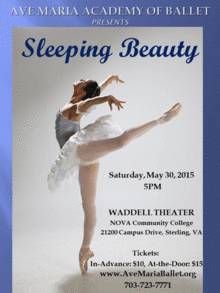 Ave Maria Academy of Ballet presents Sleeping Beauty on May 30th, 5pm at NOVA Community College in Sterling, Waddell Theater 2100 Campus Drive Sterling, VA