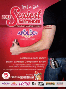 Currently, all of Faith's Animal Rescue animals are foster-based at this time but due to the faltering economy, more and more families are being forced to give up beloved pets. Their foster homes are filled to overflowing and they find themselves needing a shelter. They are working hard toward that goal so they can help even more animals, and this is where the Sexiest Bartender Competition can bring them so much closer to making this a reality.