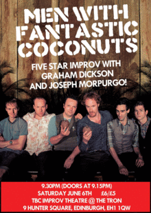 Previous praise for Men With Coconuts: "Absolutely fantastic... a must see show!" - The List Online () "Hilarious!" - EdFringeReview ()