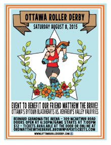 Please join ORD's Bytown Blackhearts in a full contact roller derby bout against Renfrew's Valley Valkyries with proceeds going to benefit our friend Matthew the Brave who has been battling an undiagnosed neurological disease for over two years. https://www.facebook.com/matthewthebrave?fref=ts