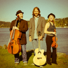 We are kicking off our 2015 Shakin' the Vines Summer Concert Series with the exceptional local band 3 Cent Stamp, known for their gorgeous crooning and harmonizing. Levi Burkle and James Hinkley (guitar and cello) are old comrades in the Whidbey music scene, having collaborated together on multiple projects over the years. 3 Cent Stamp was formed with the addition of the outstanding young talent Gloria ferry-Brennan (violin). It is sure to be an evening of amazing tunes, fun stories, and gorgeous scenery!