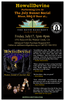 Live music by HowellDevine "What a pleasure to find a young band that really gets the blues...Deep and true to the roots. Really digging this record and so glad they're on the scene. " ~ Bonnie Raitt Beer by CaliCraft Brewing Company