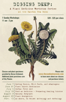 'Diggin Deep is a Plant Medicine Workshop Summer Series located (most of the time) in the backyard oasis of The Random Tea Room and Curiosity Shop located in the Northern Liberties neighborhood of Philadelphia.