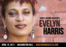 This evening of song, poetry and power will be graced with the legendary voice of former Sweet Honey in the Rock singer Evelyn Harris. This soulful night of performance will also feature the music of Rosco Kickingstone, Christine Cruz Guiao and April Nishimura, and the poetry of Fabiola Romero. Voices Rising returns to the historic ballroom of Washington Hall for another celebration of the Best of LGBTQ of Color Arts & Culture. Doors open 7:00 PM. Show at 8:00. Tickets:$10-25. sliding scale.