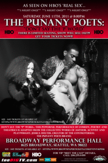 The Punany Poets Jessica Holter unwittingly created a contemporary urban design of Augusto Boal's Theater of the Oppressed when she created The Punany Poets in 1995 to address HIV AIDS among disenfranchised Americans of color. See Representin' the Forbidden, PhD dissertation. Today The Punany Poets is a strong brand and a Theater company dedicated to edutainment through hard-core theatrical presentations surrounding issues of sexuality as it pertains to economics, religion, politics, community mores, self-esteem and health. Read more about The Punany Poets at www.PunanyPoets.com.