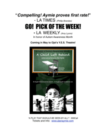 A CHILD LEFT BEHIND has been performed throughout Los Angeles, Santa Monica and The Valley honor of Autism Awareness Month in April.