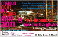 Tacomas Fashion Night Out is a black tie evening filled with fashion runway shows, couture designs and collections from local designers and boutiques. Reception hour will begin at 6:30pm with Red carpet entrance and shows will begin at 7:30pm.