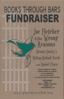 Joe Fletcher & the Wrong Reasons, Dennis Emsley's Hiding Behind Youth and Daniel Chase, all Providence based musicians, will provide a night of music in support of Books Through Bars.