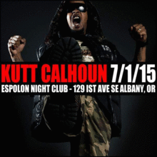 The Kansas City Chief Kutt Calhoun is coming to bless the stage at Espolon Night Club in Albany, Oregon.. Kutt will be performing all of his hit songs including new unreleased tracks from his new album "Kuttin Loose" prepare yourselves and save the date for an amazing night that only Bloody Kutty can bring you!!! Opening acts include Guilt By Association Day Dreamer Acro Dapz&Freedom and more...
