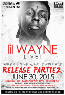 Sky Movement and Headway Entertainment Presents Lil Wayne Sorry For the Wait 2 Release Party at Club XS in Tucson, AZ June 30th 2015