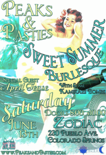 Your fave local performers doing it again with a summer swing, April Tease will be joining us from Denver, and several performers are getting the Kamikaze bomb!, meaning they are gonna dance to a song they have not prepared to perform to! Who will it be Come to the show and find out!!!