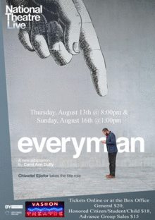 Everyman is successful, popular and riding high when Death comes calling. He is forced to abandon the life he has built and embark on a last, frantic search to recruit a friend, anyone, to speak in his defence. But Death is close behind, and time is running out.