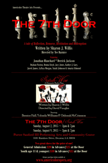 The 7th Door, by playwright Sharon J. Willis, is about an Old Man and a Young Man playing chess. Every move made the players evokes an experience from the past behind seven doors. The past, present and future are intertwined in a 'Twilight' setting of life's journeys as played in a game of chess.
