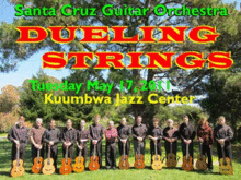 The SANTA CRUZ GUITAR ORCHESTRA presents the final concert of the 2010-11 season with an exciting program of music from baroque and romantic to jazz, ragtime, western, and rock'n roll styles played on many guitars! Directed by guitarist/composer Mesut Özgen, the SCGO is comprised of professional players, teachers, and students from the local community. The concert program includes a wide range of works. Among the highlights are Edvard Grieg's beautiful orchestral suite "Peer Gynt" (watch out how the guitars are imitating bassoons, strings, drums, and cymbals!), French Pot-Pourri by Roland Dyens (expect musical and theatric surprises from the playful composer), Gerald Garcia's "The Sandman Cometh" featuring two dueling guitar orchestras, Benjamin Verdery's "Scenes from Ellis Island" featuring surprise guest musicians in the exciting finale with a special rhythmic pattern from traditional East Indian music, and Ennio Morricone's film music for the legendary Clint Eastwood movies.