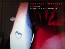 Entropy. Redress. is the second in a three year, three performance series testing the development of new techniques for use in stretching the capacity for emotional availability and bodymindvoice connection in training cross-disciplinary performance artists. Beginning with the 2010 production of exits and smoke., Rhonda J. Soikowski has endeavored to produce relevant and immediate performance in answer to questions that arise for the artist in training, teaching, and in ensemble generative process around emotion as a substance and holistic bodymindvoice connection.