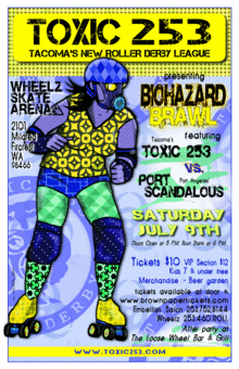 Toxic 253 vs Port Scandalous! Doors open at 5:00pm, bout starts at 6:00pm. Kids 7 & under are FREE! There will be a beer garden and the after party will be at the Loose Wheel Bar and Grill.