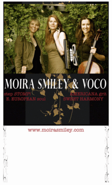moira smiley & VOCO brings effervescent life to the sweet harmony, grit & stomp of American and East European folksong, original music, music of Béla Bartók with the vaudevillian wonderment of voices, cello, banjo, accordion. Expect an evening of gorgeous vocal harmony, rhythms to dance by and songs that make you cry. Openers Vardos are a stunning trio, serenading and interacting with their audiences with Transylvanian dance tunes, popular Hungarian cafe concert music and traditional and improv gypsy music. Moira is joined by cellist/vocalist, April Guthrie and singer/composer Inga Swearingen in harmony & stomp to end their Australian tour!
