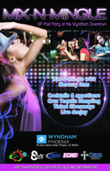 After the game head over to the Wyndham Hotel Downtown for the Post Party in the lounge complete with fans of the Phoenix Mercury! With the Cruz tequilia sampling station, drink specials and appetizers, Mercury gift bags, a live deejay, and a chance to win VIP seating upgrades and court-side seats, there will be something for everyone to cheer about! Enjoy the Post Party and get a Mix-N-Mingle commemorative t-shirt for $15. This is a 21+ event.
