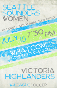 The Sounders Women represent the entire state of Washington, and prove it with a home match in Bellingham. The Victoria Highlanders, from British Columbia, Canada cross the boarder for a 7:30pm match. The two teams tied in the opening match of the 2011 W-League season. Now, in the USA, the Sounders look for the victory and they build toward the National Final 4 on July 29. The Sounders Women are the top level of Women's soccer on the West Coast and play in the United Soccer Leagues against teams from around the entire nation. The match will be played at the Whatcom Community College.