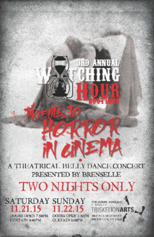 Camera! Lights! Horror!!! We're BAAAaaack ... for our 3rd dark sparkling year! Come see some of the most maddening belly dancers of the Tri-State Area as they whirl you through gripping performances in horror's cinematic history of B-movies, cult classics and fan favorites specially picked for your entertainment!