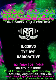 "NEON COLOR EXPLOSION" *Charleston's Largest Paint Rave* Saturday August 15th