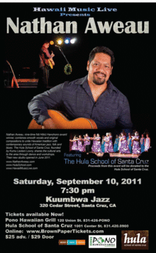 Contemporary Hawaiian music's most critically acclaimed male vocalist, Nathan Aweau, will make an appearance in Santa Cruz at the infamous Kuumbwa Jazz Center on September 10. Aweau, whose 25-year career spans such Hawaiian music royalty as Hapa, Amy Hanaialii, and Don Ho, will perform an intimate solo show to finish off his 2011 West Coast tour.