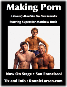 Making Porn is a play that explores the lives of 6 people involved in the gay pornography industry.