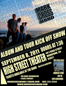 Come celebrate the release of the first Mark Cross Band official album and the first official stop on the tour! Tickets can be purchased at the door, by sending a message to any of the band members facebook pages, emailing markcrossband@yahoo.com, or asking for tickets in person! Tickets are $10. The new album along with other merchandise will be available for purchase as well as a FREE song download with each ticket purchase! There will also be a special guest appearance by Andrew Stone! The concert will also be recorded (both video and audio). If you are interested in sponsoring or helping with the event (pictures, clean up, etc.) please send us a message! Doors open at 7:30 pm. Tell your friends and family to join us and help send the Mark Cross Band off on tour! For more information please contact: markcrossband@yahoo.com. Thank you!