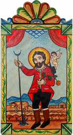 This is a rare opportunity to learn the basics of the art of retablo painting from the preeminent expert. No prior experience necessary. Students should bring pencils, drawing paper and good-quality watercolor brushes. Materials fee covers paints and pre-gessoed board. Students may have a finished retablo at the end of the day, or the ability to complete it on her or his own. Class runs 10:00 to 4:00 with a lunch break from 12:30 to 1:30 (make a run for lunch or bring a sack lunch if you like). Limited to 20 students to maximize one-on-one interaction with Charlie.