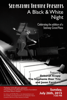 Sebastiani Theatre presents "BLACK & WHITE NIGHT A GRAND PIANO CONCERT!" featuring stellar piano artists Jason Farnham, The Stephanie Ozer Trio, and Deborah Knapp on Sunday, July 26, 7:00 p.m. This is a rare not-to-be-missed opportunity to enjoy an evening of fabulous piano music by these tremendously gifted pianists who will showcase their talents on the beautiful 100+-year-old Steinway Model O grand piano generously donated by Robyn Makaruk to the Sebastiani Theatre. Jason Farnham, recently relocated from Los Angeles with his beautiful family, is thrilled to make his local debut performance at the magnificent Sebastiani Theatre. He has delighted audiences around the U.S., again and again. He began playing the piano at age 4 and is classically trained. His fans have affectionately dubbed him "Schroeder" from Peanuts because of his toy piano, his witty Victor Borge-style piano comedy antics, and the clever way he interacts with the audience. The variety includes contemporary romantic piano, jazz, bossa nova, blues, stride piano, and classical with a modern twist. Jason is always looking for an interesting spin on the status quo, a way to take a classic and turn it on its ear.