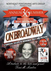 The award-winning Northeast Performing Arts Group presents their 36th annual summer production "On Broadway" for two performances on Friday, August 14, 2015 at the Woodrow Wilson High School auditorium.