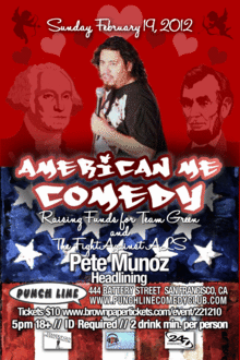 American Me Comedy, Raising Funds for Team Green & The Fight Against ALS!, will be an evening of the best Bay Area stand up comedy featuring today's hottest working comics from all walks of life - race, color, religion, sexual orientation - sharing their unique and hilarious perspectives on life experiences.