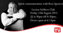 Spirit communication with Ross Spencer Leeton Soldiers Club Friday 14th August 2015 @ 6:30pm till 8:30pm, doors open at 6:15pm Investment of $30.00