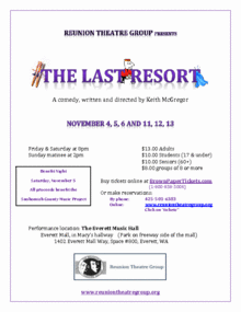 Reunion Theatre Group presents its Fall production, "The Last Resort", a comedy written and directed by Keith McGregor.