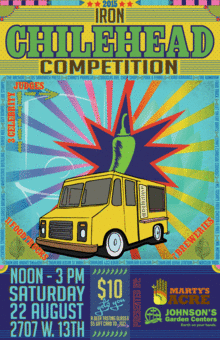 There will also be a food truck competition with 11 of Wichita's favorite food trucks and restaurants competing for the Iron ChileHead! There is no charge for the food truck competition, except for the menu items purchased at the individual trucks, which include: The Anchor, BS Sandwich Press, Chino's Parrilla, Douglas Avenue Chop Shop, Fork & Fennel, The Kamayan Food Truck, Kind Kravings, Let 'Em Eat Brats, Lynn's Curbside Cookout & Mr. Natural Soul Kitchen.