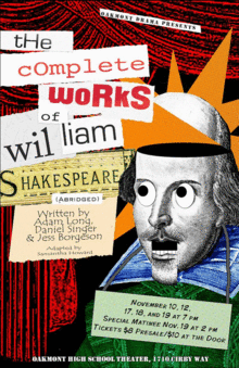 Warning! This show is a high-speed roller-coaster type condensation of all of Shakespeare's plays, and is not recommended for people with heart ailments, bladder problems, inner-ear disorders and/or people inclined to motion sickness. Oakmont High School cannot be held responsible for expectant mothers!