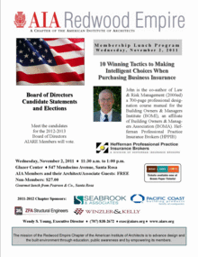 Heffernan is hosting the lunch program for November so the lunch and the program will be FREE to AIARE Members and their Architect or Associate Architects guests.