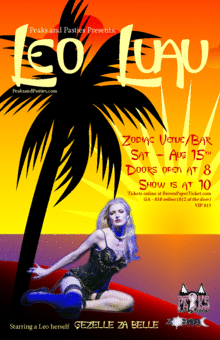Doors open at 8pm Showtime 10pm Join Peaks and Pasties as we celebrate the many Leos of of the troupe!! One large birthday bash, in luau style!