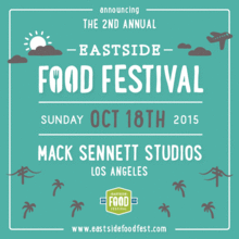 EASTSIDE FOOD FESTIVAL is back! After a successful (SOLD OUT) inaugural event in November of 2014, the presenting partners have come together once again to bring you the 2nd annual EastSide Food Festival. Returning to the creative hub of Silverlake Mack Sennett Studios - and celebrating the foodie culture that Los Angeles has become known for, EastSide Food Festival is a gathering of the best of the best and the rising stars from LA's gastronomic scene. The festival supports local sustainability, featuring locally owned/operated businesses including over 30 local vendors including restaurants, celebrity chefs, caterers, locally owned brands, and more.