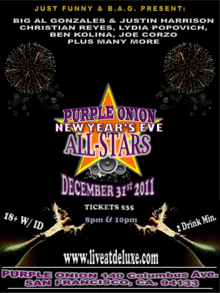 ome Celebrate NYE at San Francisco's most historic comedy venue. Purple Onion has a storied past, which includes performances by Zach Galafianakis, Robin Williams, Richard Pryor, Bill Cosby, Phyllis Diller, The Smothers Brothers and Lenny Bruce.