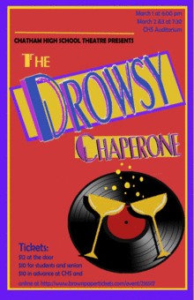 This March the CHS Theatre Department is thrilled to be producing the celebrated, hilarious Broadway musical The Drowsy Chaperone. Winner of five Tony Awards in 2006, this sparkling show begins when a die-hard musical fan plays his favorite cast album, a 1928 smash hit called "The Drowsy Chaperone," and the show magically appears in his apartment. The audience is instantly immersed in the glamorous, madcap tale of a celebrity bride and her uproarious wedding day, complete with the Broadway producer who sets out to sabotage the nuptials, her eccentric chaperone, the debonair groom, the dizzy chorus girl, the Latin lover and a pair of gangsters who double as pastry chefs. Its side-splitting humor and fizzy score will entertain both young and old.