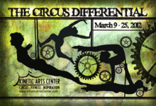 The Circus Differential is a moving, evolving and gear-driven world with awe-inspiring circus acts. The Circus Differential is presented by Kinetic Arts Center (Oakland), directed and conceived by Artistic Director Jaron A. Hollander and starring Kinetic Art Center's own Circus Spire Youth Troupe. In The Circus Differential you will be transported into a clock world of gears and cogs, energy, color and circus acts which will keep you riveted. The Circus Differential is appropriate for all ages. PURCHASE A VIP TICKET FOR A RESERVED FRONT ROW SEAT AND A $5 CONCESSION COUPON. All tickets are priced $5 higher if purchased at the door.