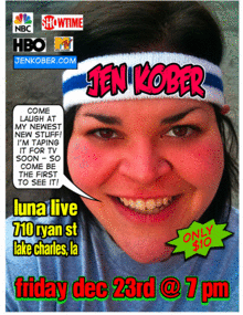 Originally from Lake Charles, LA - Jen Kober has bounded onto the national stage bringing crowds to their feet with her original blend of stand-up, story telling, and improvised rock-n-roll comedy. Her hard-hitting hour is phenomenally funny as Kober commands the stage and dares you not to laugh.