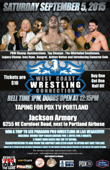 The West Coast Wrestling Connection has its next LIVE TV Tapings, Saturday September 5th. First bell is at 1pm, doors open at 12:15pm.