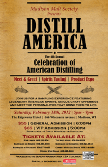Join us for a sampling experience featuring legendary American spirits, unique craft offerings and meet the personalities that bring them to life. Over 40 distilleries represented many with multiple offerings. Ticket includes a tasting glass, appetizers, and access to some of the best distilled spirits this country has to offer. Distill America benefits the Madison Area CSA Coalition.
