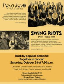 Nevenka and The Swing Riots - back by popular demand! October 24 in Santa Monica