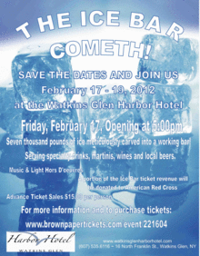 The 2012 Ice Bar at Watkins Glen Harbor Hotel is an event you don't want to miss! Get your tickets now, before they are gone, and then step outside for specialty martinis and ice wine, served from one of the beautifully carved Ice Bars, made of real ice.