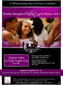 A relationship that will last a lifetime! This is a night of magic between fathers and daughters of all ages. Fathers, Uncles, Step-Fathers are invited to bring out their princesses for an evening of full dinner, dancing, music, photos, and gifts.