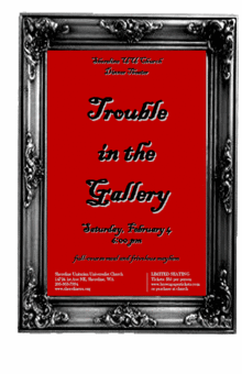 The Florian Wishwell Memorial Gallery of Pratt Falls, Washington, will be hosting a dinner opening for its first one-person show, Pratt Falls own Rockwell Norman. Inspired by the pointillist style of Seurat, Mr. Norman has achieved some fame for his paintings of clouds, earning him the nickname of, "The Cloudpainter." However, rumors abound in this small village on the Olympic Peninsula, and there are rivalries and bad feelings among the local art community. Featuring a delicious dinner and a mystery to be solved!