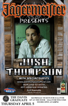 Nashville recording artist Josh Thompson will be performing a live concert at The Davis Graduate on Thursday, April 5, 2012.